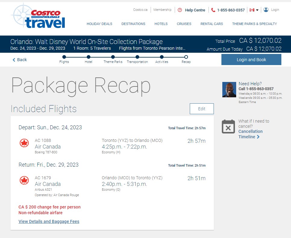 특히 온타리오나 퀘벡에서는 올랜도가 가깝기 때문에 정말 인기가 많다. 우리 가족도 이번 연말에 계획된 여행까지 고려하면 총 3번을 다녀오게 된다. 처음에는 인터넷 여행사를 통해서 예약을 하였고, 두 번째는 코스트코트래블(costcotravel.ca)을 통해서 예약을 하였다. 점점 경험이 생겨서 그런지 이번에는 비용을 줄이면서도 내가 원하는 방식으로 여행을 하기 위해서 비행기표, 호텔, 렌터카 및 디즈니월드 티켓 모두 그냥 혼자서 별도로 구매를 했다.